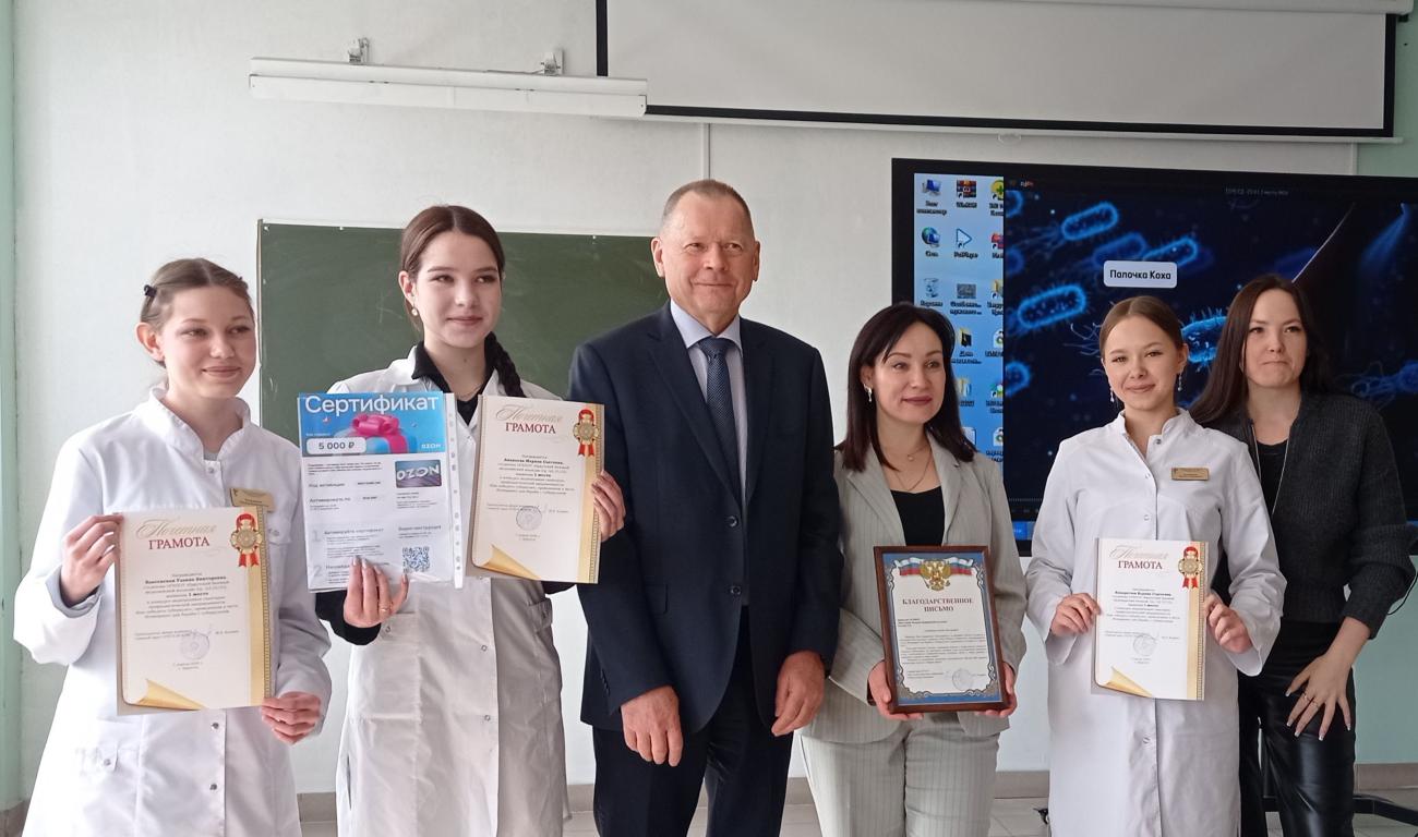 М.Е. Кощеев вручил директору ИБМК Евгении Викторовне Реховой благодарственное письмо, победителям конкурса – почетные грамоты и ценные подарки.